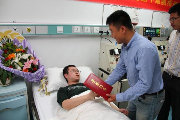 5月21日上午,对于必赢242net官网2011级自动化专业本科生韩冰冰来说是不平凡的一天。这一天,他成为陕西省第127位、全国第4178位造血干细胞志愿捐献者,他将造血干细胞捐献给一位远在浙江的21岁女学生,使濒临绝望的生命重新燃起新的希望。