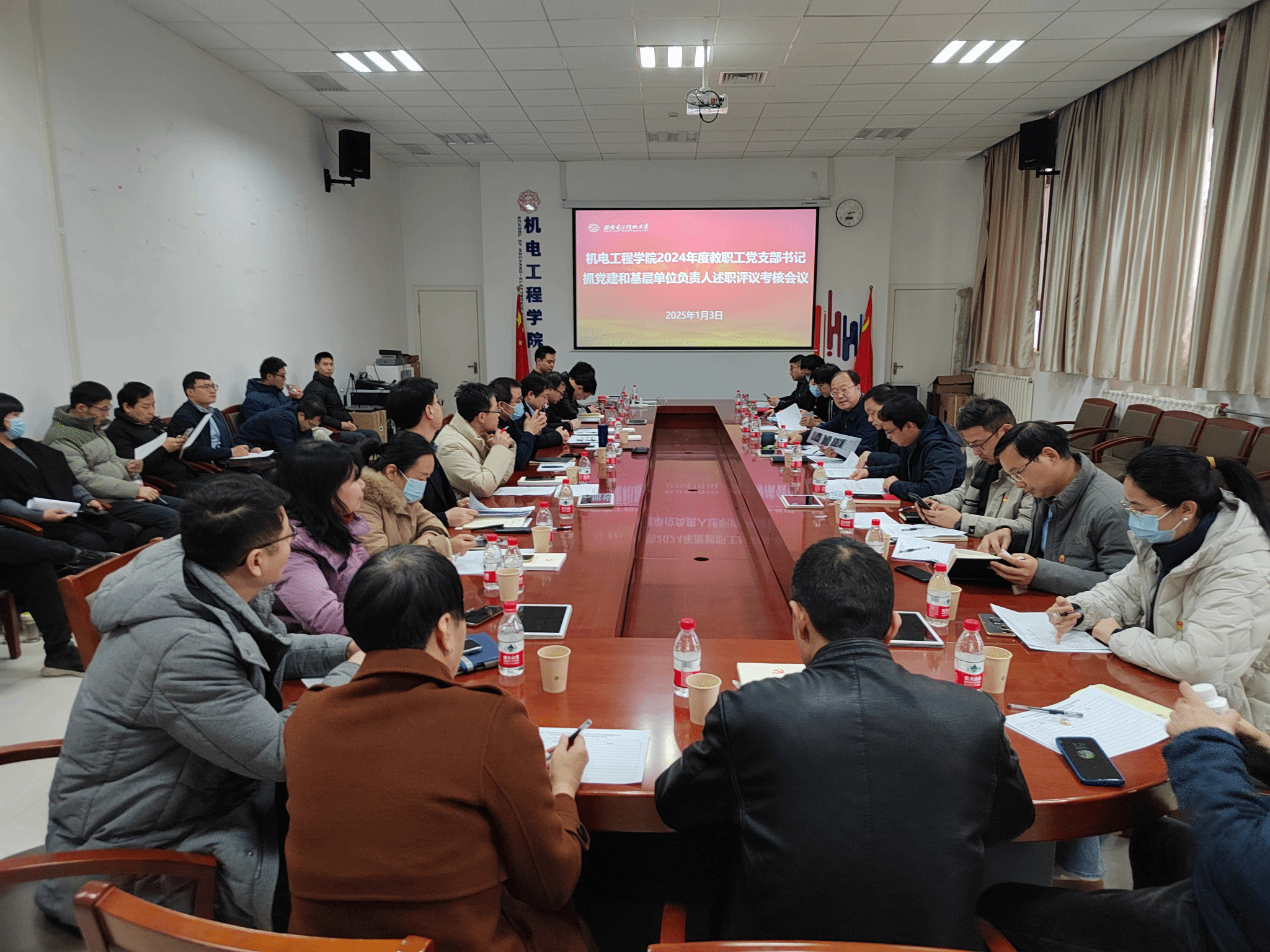 本次述职评议会采用现场汇报和书面述职相结合的方式进行,学院11个教职工单位的党支部书记和负责人进行现场述职。各教职工党支部书记以习近平新时代中国特色社会主义思想为指导,从学习贯彻党的二十届三中全会和全国教育大会精神、落实教职工集中学习制度和聚焦“强国建设 机电何为”等方面出发,汇报了2024年度各支部工作开展情况,认真总结了履职情况、亮点特色工作、存在问题和下一步工作计划;各单位负责人对2024年度在落实立德树人根本任务、提高人才自主培养质量、提升服务国家重大战略能力等方面开展的亮点工作及取得的成果进行了汇报,总结了本年度的任务完成情况,并针对存在的问题进行了深入分析。与会评委根据现场述职和工作开展情况进行打分。