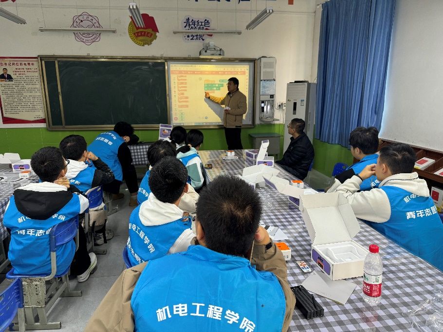随后,志愿者们还同世界机器人大赛青少年设计大赛的指导老师一起,在龙池镇中心小学科创小屋开展了机器人比赛培训,通过机器人培训项目能够让龙池镇中心小学持续稳定地开展机器人相关支教课程,深化我校与龙池镇中心小学的教育合作,同时提升乡村教育水平,为乡村小学注入科技教育的活力,以适应时代的发展需求。