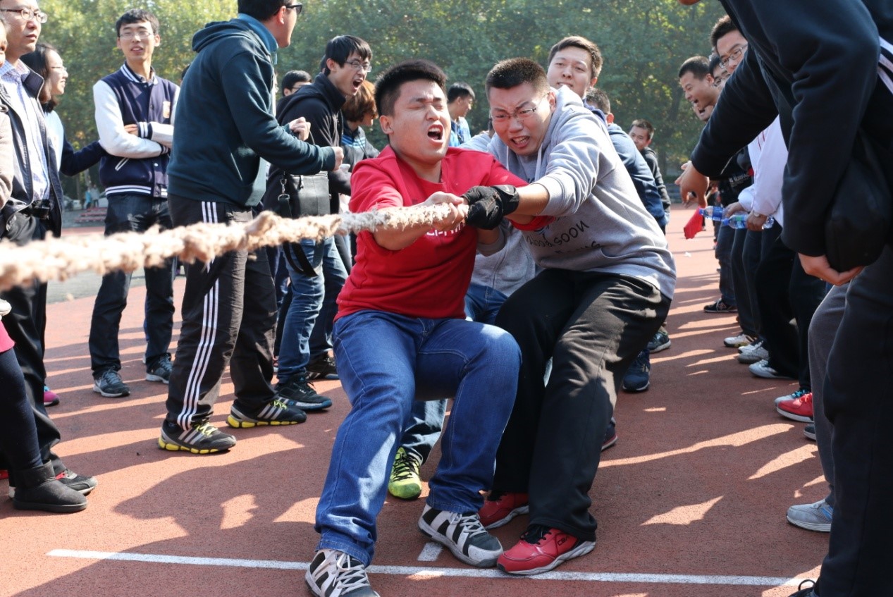 (通讯员 王冬阳)2015年11月1日,秋色宜人,天朗气清,必赢242net官网第三届研究生趣味运动会在老校区操场正式拉开序幕。运动让idea迸发!为促进学院之间的交流,增加各学院研究生之间的互动,本次运动会以院为单位进行比赛。比赛项目共有9项,包含8个竞赛项目(5人持竿蛇形往返接力、20米足球绕杆接力、篮球运球上篮接力、拔河、1分钟个人跳绳团体赛、集体跳大绳、30米绑腿同行比赛、20人×60米穿梭接力)和1个表演项目(相扑擂台表演赛)。