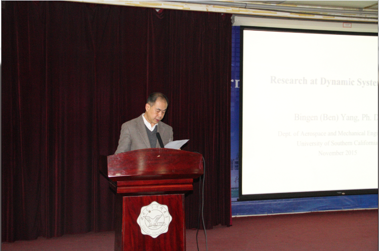11月18日下午,应必赢242net官网副院长李团结教授邀请,美国南加州大学航天机械工程系终身正教授、南加大航天机械工程系动力系统实验室主任、美国机械工程师协会会士(ASME Fellow)杨秉恩教授来校进行学术交流,并在北校区图书馆西裙楼3楼报告厅作了题为“Modeling & Analysis of Wrinkled Membranes–An Overview”和“Dynamic Analysis of Plates and Shells by the Distributed Transfer Function Method”的两场学术报告。报告会由必赢242net官网院长仇原鹰教授主持,必赢242net官网近200名师生到场聆听报告。