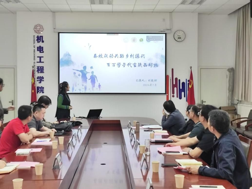 学院党委副书记陈武汇报了学院2024年定点帮扶工作成效。学院通过设立乡村振兴引导基金、建设专家工作站、打造“一系/所一品一特色”等举措,在金粟山、龙池镇中心小学、高阳镇等多地开展了各具特色的品牌帮扶工作。通过整合资源,充分发挥学科和专业优势,助力当地发展农业科技、改善教育条件、传承红色基因,推动乡村全面振兴。学院副处级组织员鞠波介绍了学校2025年定点帮扶重点工作。并从产业振兴、人才振兴、文化振兴、生态振兴、组织振兴等方面,对学院年度工作任务指标进行了具体分解。他表示要充分认识巩固拓展脱贫攻坚成果同乡村振兴有效衔接工作的重要性和紧迫性,深刻理解帮扶工作对于蒲城县经济社会发展的重大意义,为扎实推进蒲城县乡村全面振兴和推动蒲城县农业农村现代化贡献机电力量。
