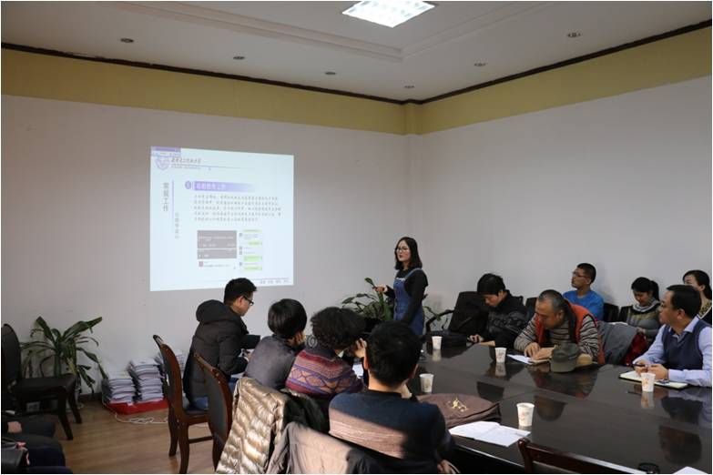 来自学院办公室的机关工作人员和全体辅导员结合各自工作岗位实际,依次汇报了2015年度工作开展情况、存在的不足和下一步努力方 向以及工作展望等。汇报采用PPT形式,每人进行8分钟陈述。