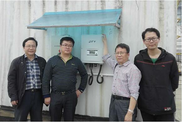 图2 国蓉科技张栋付总经理与我院王水平、赵明英等在光伏基站现场