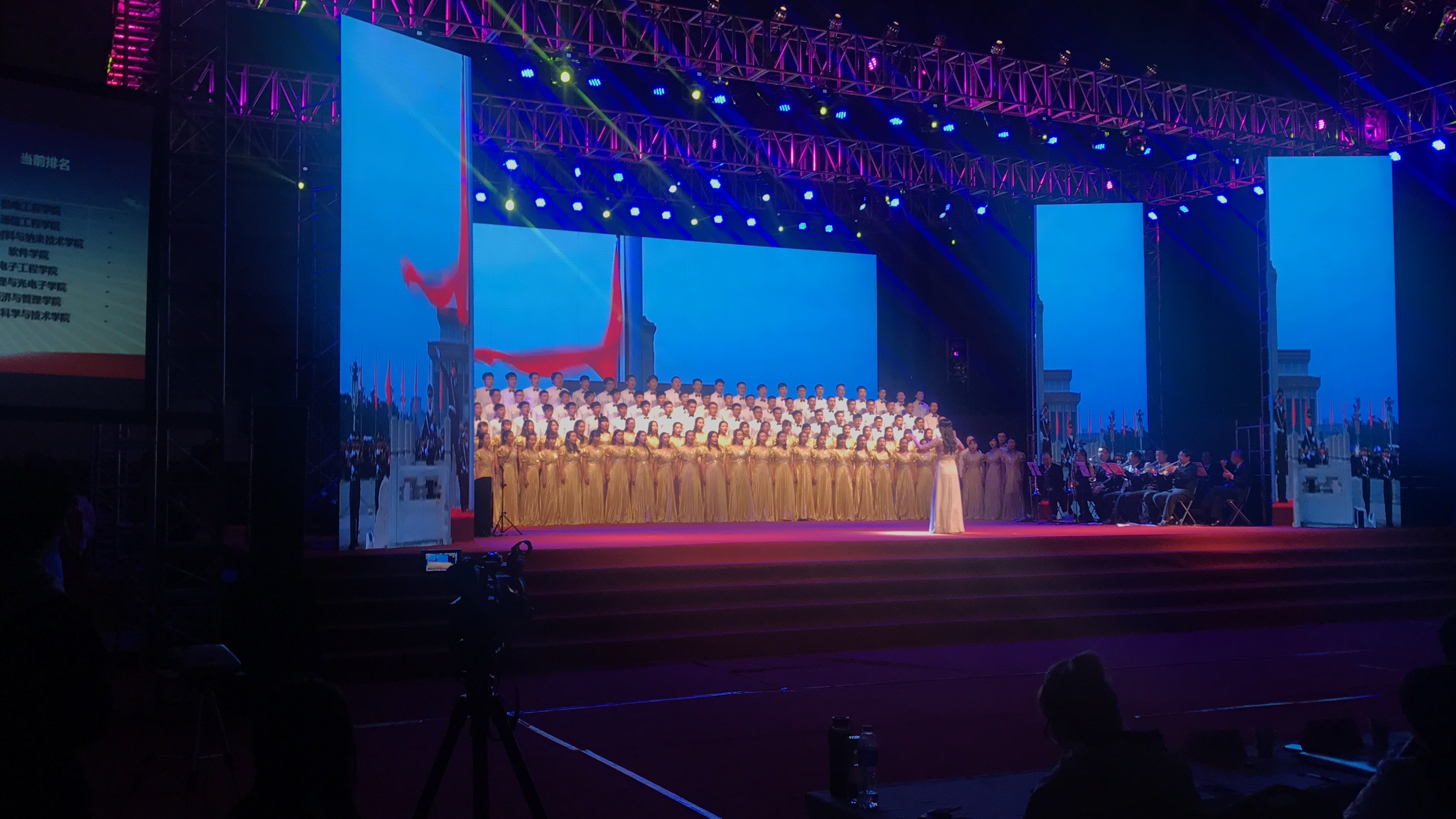 必赢242net官网合唱队伍演唱的曲目是《与共和国同行》和《光荣与梦想》,经过一个月的训练,在同学们与带队老师王飞和老师王维佳、石贵利、张育洋的共同努力下,学院合唱队伍精彩的完成了这两首歌曲,气势恢宏、歌声嘹亮、舞蹈动作整齐划一,赢得在场观众的阵阵掌声。