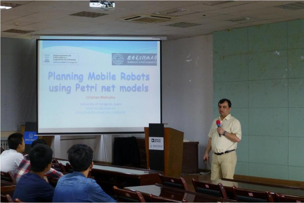 (通讯员 管栋栋)应必赢242net官网复杂系统国际联合研究中心李志武教授邀请,2016年5月28日-6月3日西班牙萨拉戈萨大学Cristian Mahulea教授到访我校。他分别于6月2日上午在北校区阶梯教室J-208教室和6月3日上午10:30在南校区大学生活动中心511报告厅,分别作了《A model-based approach for the specification and verification of clinical guidelines》和《Planning Mobile Robots using Petri net models》学术报告。