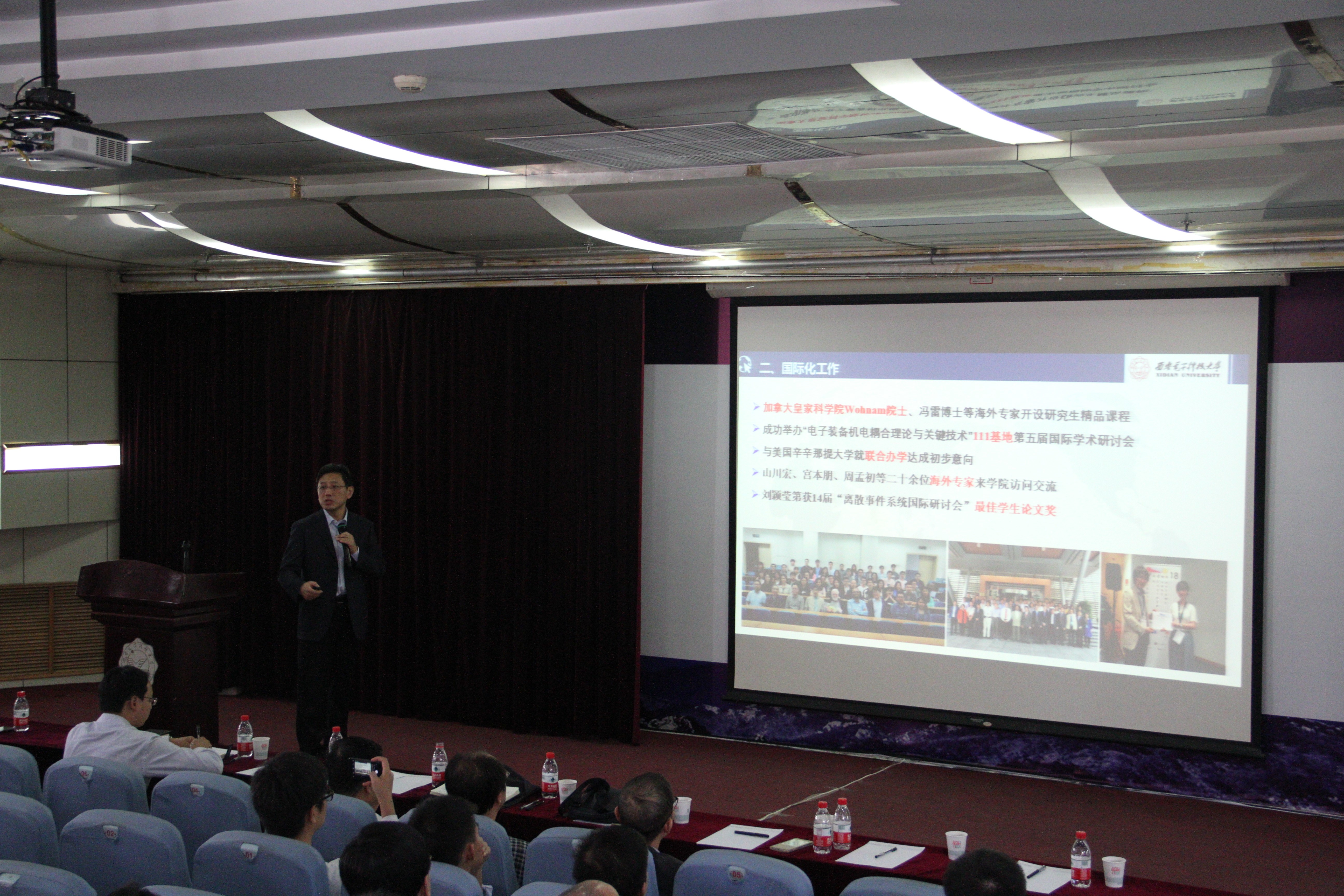 黄进院长汇报了学院党建、国际化、科研、人才培养、人事人才等方面在上半年取得的突出成果,分析了学院目前存在教学有面缺线没点、科研有点有线没面、师资有点有面没线的实际问题并给出了解决思路,然后全面部署了下半年学院的发展规划和具体工作安排。