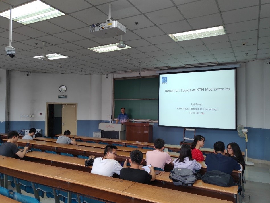 6月27日上午10点,冯雷老师开始了本次来访的第一节课,他以在瑞典皇家理工学院的研究内容作为开场,丰富的内容引起了学生们的积极讨论。