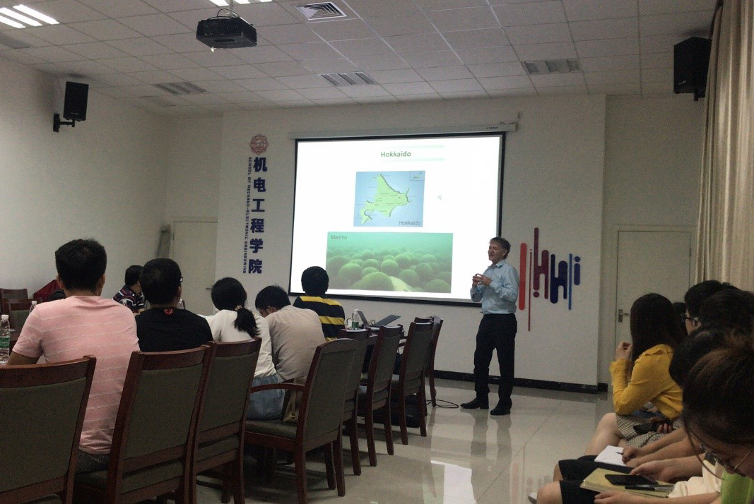 Wright教授用生动的语言像我们介绍了他所任职帝国七校之一的北海道大学,以及北海道的中心城市札幌。Wright教授开玩笑的说到:“不用担心,札幌的街道没有熊。”接着Wright教授简单介绍了他所研究的项目。他用精妙的语言,生动形象的例子,把原本生涩难懂的物理知识讲的生动有趣。同学们和老师们都听的津津有味。