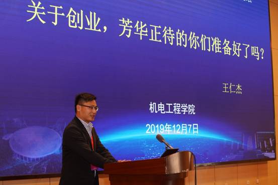 王仁杰以“关于创业,芳华正待的你们准备好了吗?”为主题与同学们分享了自己的创业心得。他用45个字分别概括了创业职业规划、能力培养、践行创业的因素、案例分享和创业观,“秉初心、贵以专、志高远!博众长、补己短、善修身!应天时、用地利、造人和!哭也过、累也过、笑也过!益为重、利为轻、赢为终!”。王仁杰用详尽生动的语言,结合自身经历和真实例子进行了深入的剖析和详细的解读,让利重义、不忘初心、善用天时地利人和。