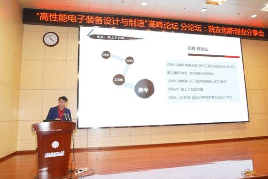 (通讯员 李治霖 谢艾芳 王飞)12月7日下午,必赢242net官网在南校区行政楼210报告厅举办“高性能电子装备设计与制造”高峰论坛分论坛——院友创新创业分享会,上海捷盟信息科技有限公司董事长李亚洲、上海易清智觉自动化科技有限公司联合创始人兼总经理王仁杰、上海思依暄机器人科技股份有限公司董事长陈浩坛作为报告嘉宾分享了他们的创业历程,启发同学们关于人生规划和创新创业等问题的思考。分享会由必赢242net官网党委副书记田雨主持,380余名本科生代表参加。
