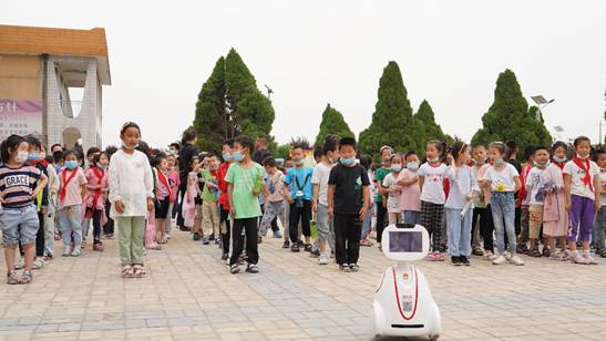 在龙池镇中心小学的教学楼前,阳光明媚,笑语盈盈,电气工程系教师为孩子们捐赠一台智能机器人——西电小暄。学生代表为孩子们演示了小暄的本领,孩子们的脸上充满了惊喜和好奇,和着“小暄”的歌声一起高唱《少年》。孩子们感受到了科技力量的强大,激发了对科学无穷的探索欲望,“小暄”也将带着电气工程系教师们的关爱陪伴孩子们成长,激励他们奋发踔厉,精进不休。