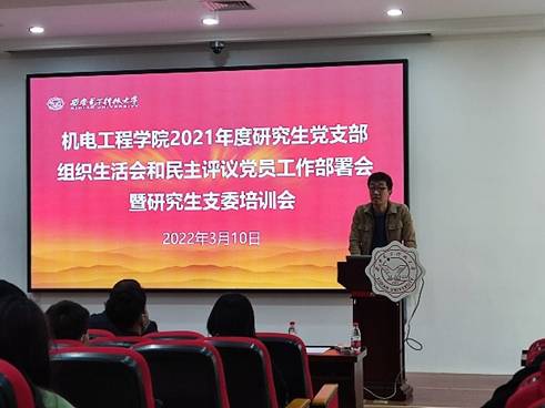 会议最后,陈武强调,今年是党的二十大召开之年,各支部要认真组织理论学习,积极开展各项工作,鼓励进行活动创新,努力实现理论业务双丰收,以优异成绩迎接党的二十大胜利召开。他就本学期研究生党支部工作提出了几点要求,一是要强化理论学习,支委要发挥领学作用,主动补短板,提升支部全体党员的理论水平和政治素养;二是要主动履职尽责,支委要认真对待各自岗位职责,秉着对学校负责和对同学负责的态度切实开展好支部各项工作;三是要做好榜样示范,各支委要凸显“一名党员,一面旗帜”的示范引领作用,以点带面,辐射影响身边同学,让大家都能在大学期间提升本领、有所收获。