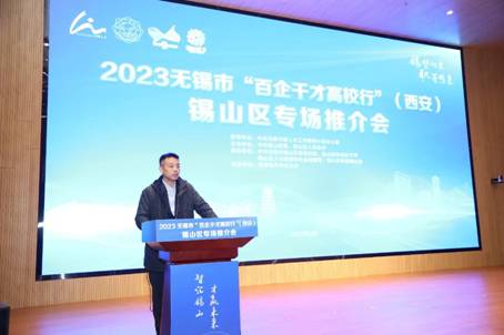 3月24日上午,由无锡市锡山区委和锡山区人民政府承办的2023无锡市“百企千才高校行”西安专场推介活动,在必赢242net官网南校区网安大楼B101报告厅顺利举行。必赢242net官网党委副书记、纪委书记郭俊,必赢242net官网党委书记梁玮,以及相关学院负责人出席了专场推介活动,锡山区副区长代星主持本次活动。