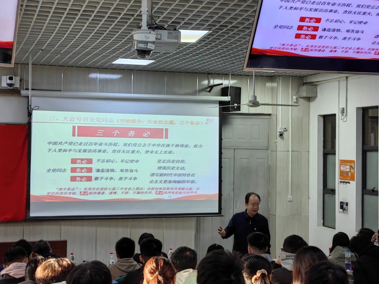 通过观看央视新闻宣传视频《新征程是充满光荣和梦想的远征》,梁书记引出了本次党课的核心思想:学习二十大,永远跟党走。 在党课上,梁书记向大家解释了中国特色社会主义伟大旗帜的内涵,强调伟大旗帜指引下的中国发展与中华民族振兴的紧密联系。梁书记还向积极分子展示了过去五年的重大成就和挑战,指出学习贯彻党的二十大精神,要牢牢把握过去5年工作和新时代10年伟大变革的重大意义,牢牢把握新时代中国特色社会主义思想的世界观和方法论,牢牢把握以中国式现代化推进中华民族伟大复兴的使命任务,牢牢把握以伟大自我革命引领伟大社会革命的重要要求,牢牢把握团结奋斗的时代要求。 新的赶考之路上,时代是出卷人,我们党是答卷人,人民群众是阅卷人。在党课的尾声,梁书记告诉积极分子,第二个百年奋斗目标需要我们这一代青年人展现担当与作为,无论过去、现在还是未来,中国青年始终是实现中华民族伟大复兴的先锋力量。历史的延续、文明的传承、事业的开创正需要一代又一代青年不懈奋斗。这在积极分子中引起了强烈的反响,学员们进一步认识到作为新时代青年人,要担当时代责任,不畏艰难险阻,发扬逢山开路,遇水架桥的克难精神,以史为鉴、开创未来,让奋斗成为人生最亮丽的底色,用实际行动走好新时代的复兴路。 薪火传承,共铸梦想——“青春在新征程”