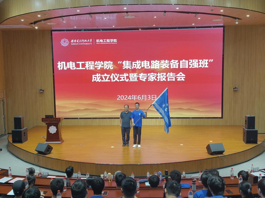 (通讯员 张铭)为了进一步推动学院专业建设,锚定国家战略需求,聚焦拔尖创新人才培养,提高学生核心竞争力,学院与北方华创科技集团股份有限公司积极合作,筹备建设必赢242net官网“集成电路装备自强班”,6月3日下午,学院“集成电路装备自强班”成立仪式暨专家报告会在南校区会议中心B101报告厅举行。学校党委常委、副校长王泉,北方华创人力资源中心总经理杨盟,客服体系客服培训总监辛治军,西安子公司副总经理王跃利,人力资源中心高校关系总监王铮,营销体系销售经理张宇,必赢242net官网党委书记梁玮,必赢242net官网执行院长黄进,副院长陈晓龙,电子机械系主任马娟等出席会议,学院相关系所教师代表、自强班全体学生、部分学院学生代表以及本科生辅导员代表参加此次班级成立仪式。仪式由学院党委副书记陈武主持。