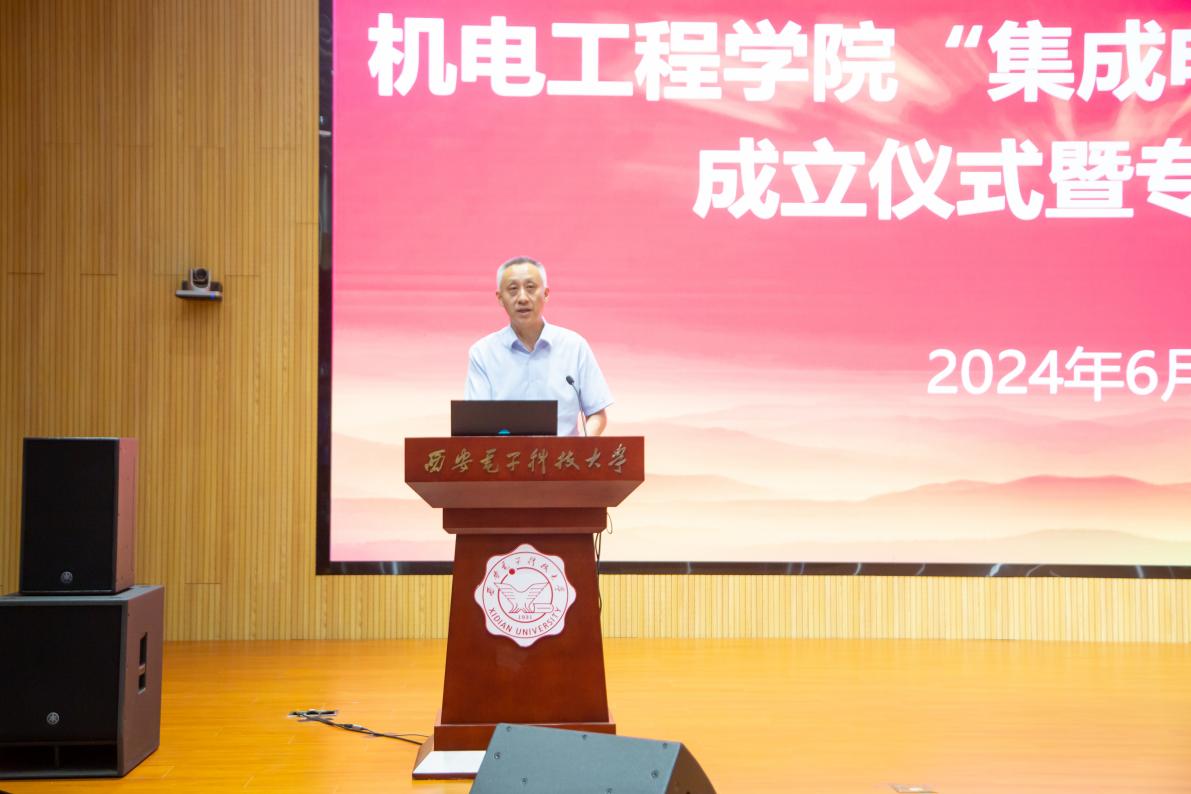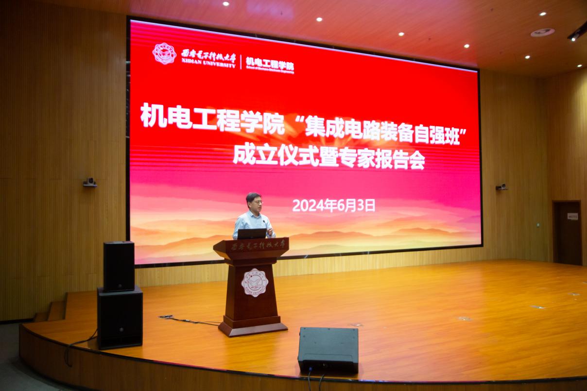 王泉对“集成电路装备自强班”的成立表示衷心的祝贺,向北方华创一直以来对学校建设与发展给予的支持表示感谢。他对自强班的建设提出了三点建议与希望:一是希望同学们怀抱荣誉与使命,铸就强国之志。希望同学们以高度的责任感和使命感投入到学习和实践中去,始终保持对集成电路相关知识的渴望和对先进技术的追求。二是坚持自强不息,追求卓越品质。“自强不息”是西电的精神之一,也是自强班的核心精神。希望大家能够发扬这一精神,不断锤炼自己解决复杂工程实践问题的能力,在集成电路装备领域不断取得新的突破。三是深化校企合作,加强产教融合。希望学院能够与北方华创等头部企业保持密切联系,深入了解企业的技术需求和市场动态,进一步优化和探索人才培养方案,推动产教融合走深走实,共同培养可堪时代大任的卓越工程技术人才。