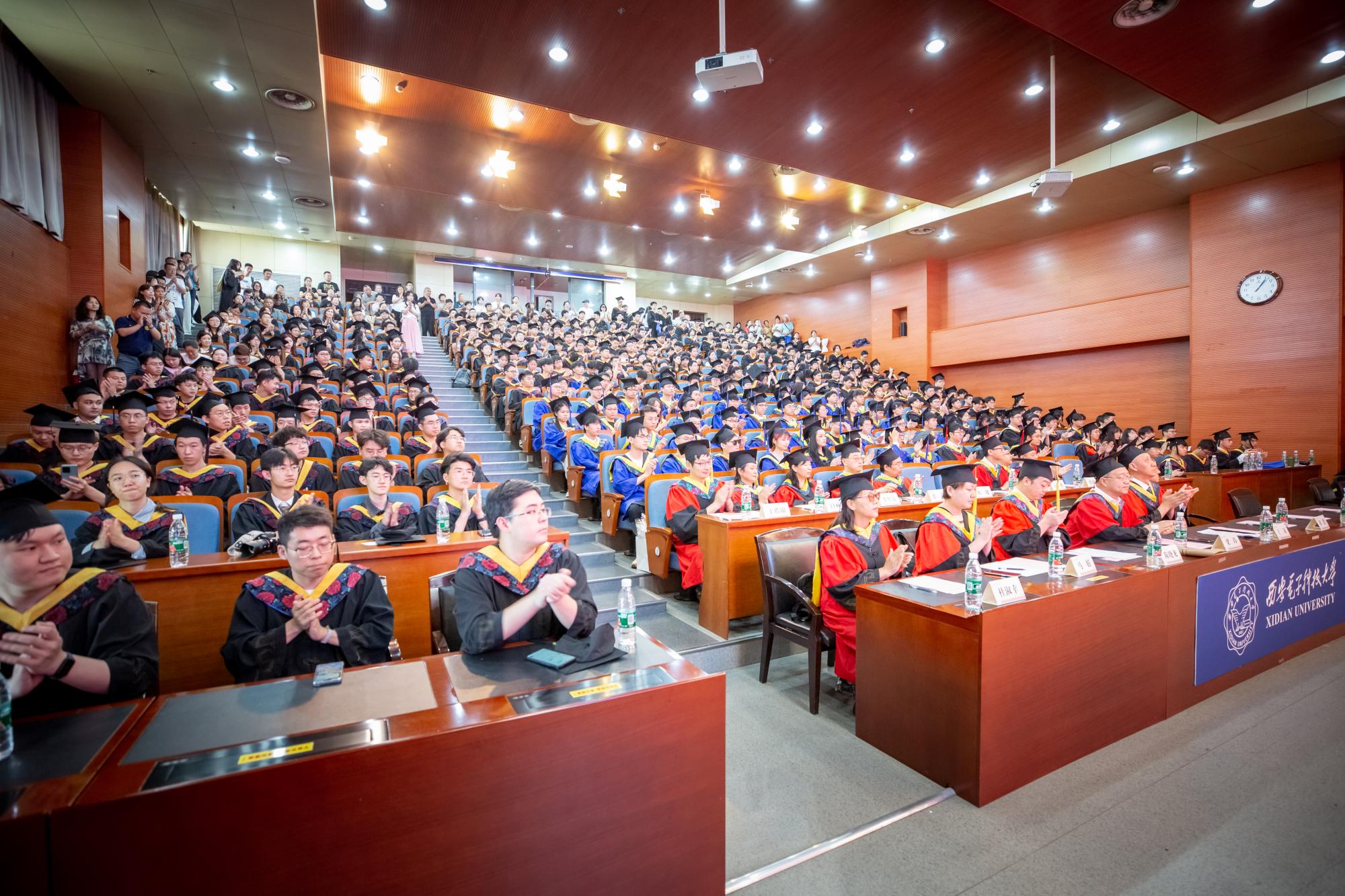 王泉在致辞中代表学校向2024届毕业生致以热烈的祝贺和美好的祝愿,向辛勤耕耘的老师和家长表示崇高的敬意和诚挚的感谢。他表示,非常高兴看到同学们如今斗志昂扬、蓄势待发的精气神及沉甸甸的成绩单,2024届学子用青春汗水铸就了成长的蜕变,用不懈的奋斗换来了丰硕的果实,展现出动人的青春风采,留下了永恒的西电印记。在同学们即将开启崭新人生之际,他对学院全体毕业生提出了三点希望:一是要以信仰之光乘风起航、挺膺担当,在理想照耀下赓续前行。希望同学们心系国家事,肩扛国家责,在祖国的广阔舞台上施展抱负、大展宏图,用脚步丈量祖国大地,让青春在全面建设社会主义现代化国家的伟大实践中磨砺出彩。二是要以创新之志挥桨破浪、踵事增华,在开拓进取中创造未来。创新是蕴含于西电校风中的内涵,更是每一位学子矢志不渝的追求。希望大家用学识才智赋能中国式现代化,奏响开拓创新的时代最强音。三是要以奋斗之姿把舵扬帆、奋楫笃行,在躬行实践中攻坚克难。所谓艰难方显勇毅,磨砺始得玉成。希望同学们能够以乐观豁达的心态面对实践中的艰难险阻,在考验磨砺中汲取经验,踔厉奋发,勇毅前行,以奋斗姿态谱写动人的青春乐章!