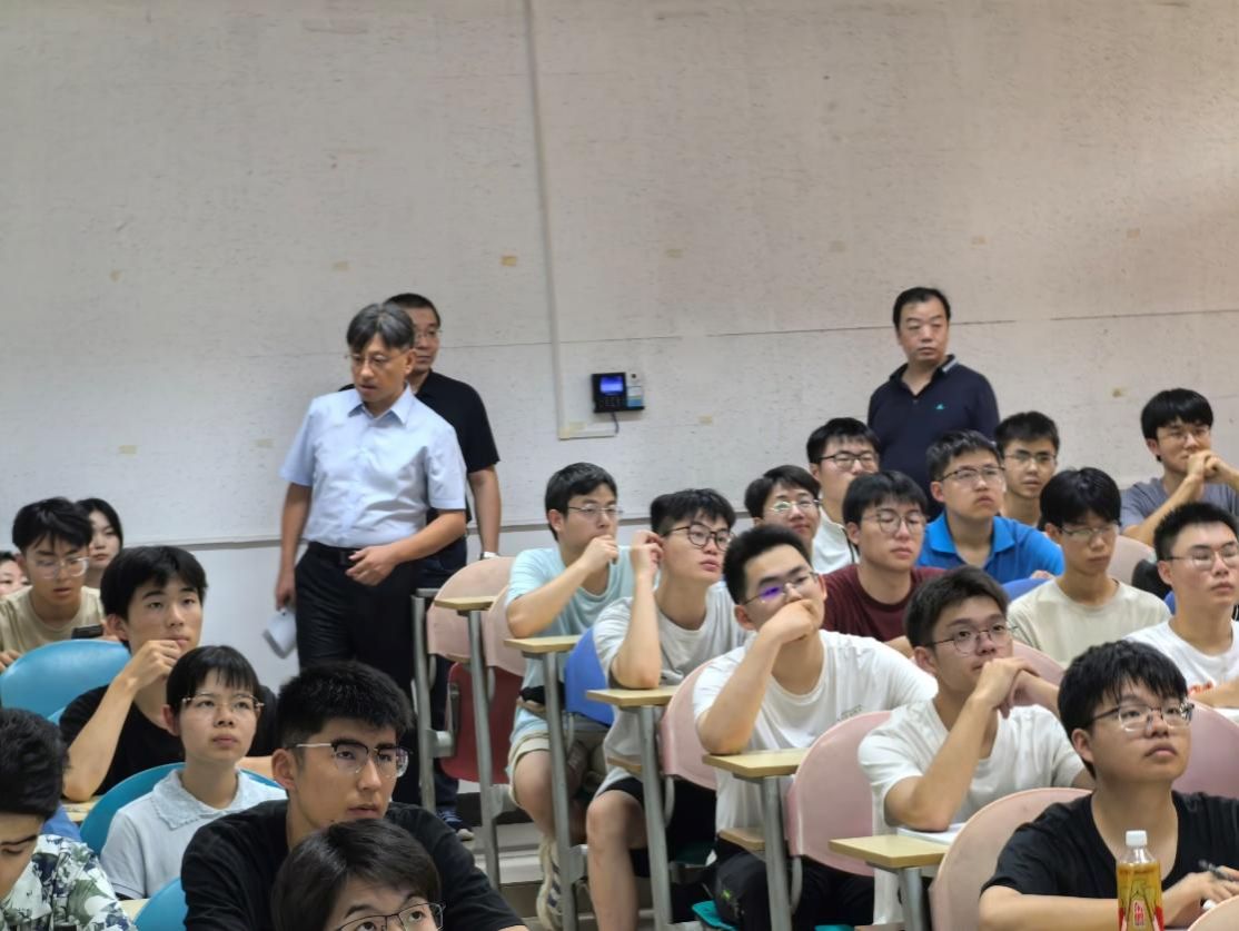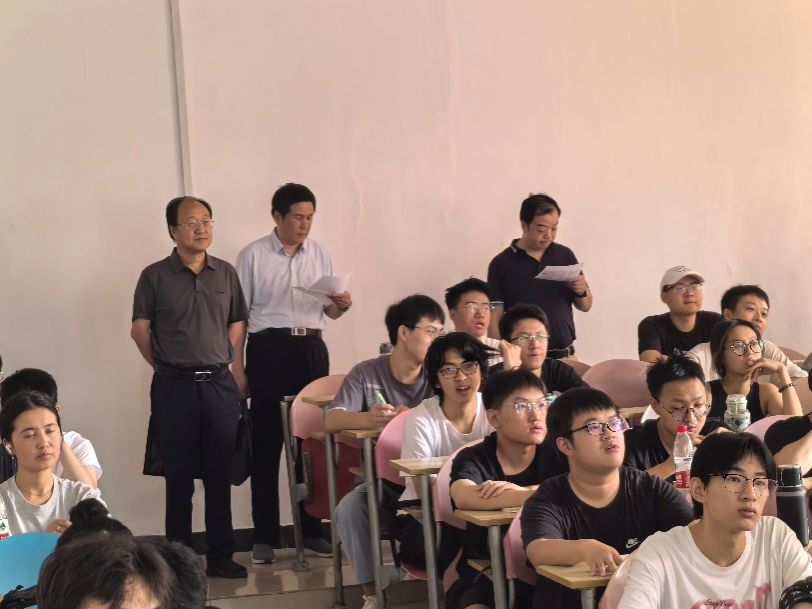(通讯员 王飞)新学期开学之际,为提升本科教学质量,严明学生课堂纪律,建设优良学风作风,引导学生养成良好的学习习惯,营造严谨治学、奋力勤学的学习氛围,2024年9月2日至9月6日,必赢242net官网开展为期一周的开学本科教学检查活动。9月2日上午,由必赢242net官网分党委书记梁玮、执行院长黄进带队,教学副院长陈晓龙及学院其他领导、督导、各系主任、支部书记、本科教学办公室人员及相关年级辅导员参与组成检查组,对开学第一课的教学秩序进行检查。