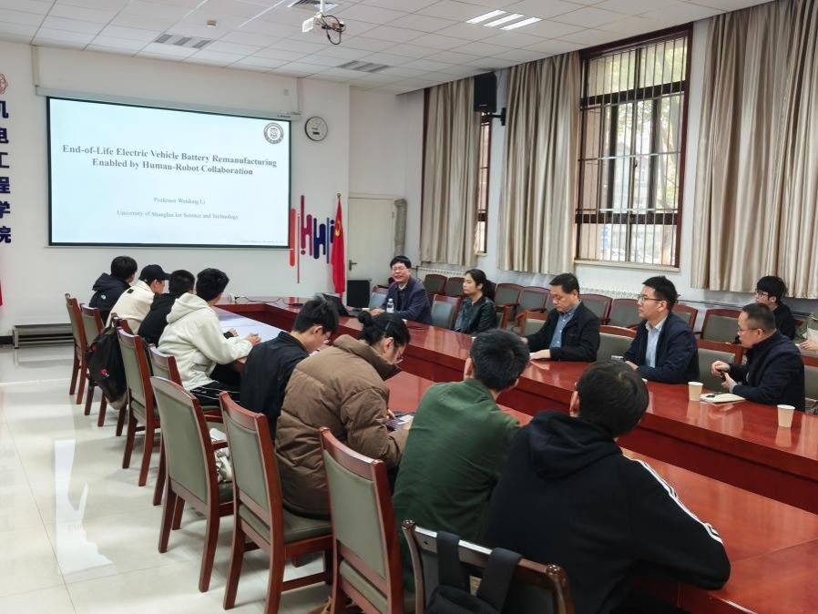 在互动环节中,李教授与学院师生就如何在科研中发掘新方向展开深入交流。他鼓励青年教师和学生始终保持学习和创新的热情,不断适应工业发展对新技术的需求,并着重强调了学校和科研平台对人才培养的支撑作用。李卫东教授还展示了其团队实验室在智能制造、锂电池拆解等领域的最新成果,为现场师生提供了宝贵的学习和研究参考。