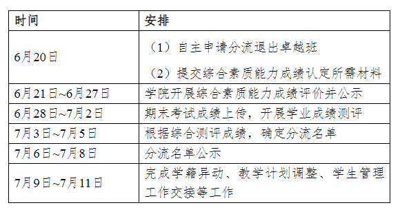 (1)学生自愿申请分流退出卓越班一贯制培养计划;