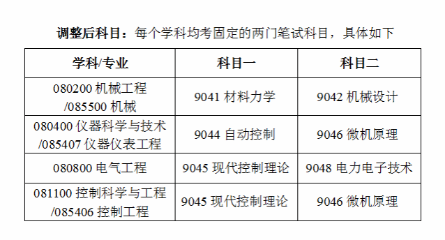 原科目:(九选二)9041 材料力学;9042 机械设计;9043 机械制造基础;9044 自动控制;9045 现代控制理论;9046 微机原理;9047 传感器原理;9048 电力电子技术;9049 模拟电子技术基础