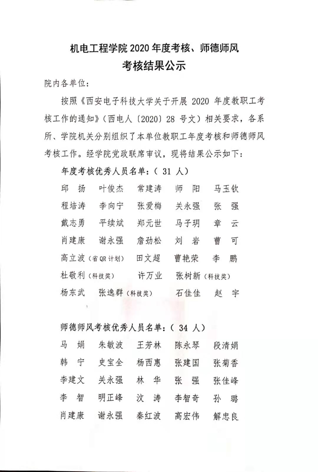 必赢242net官网2020年度考核、师德师风考核结果公示