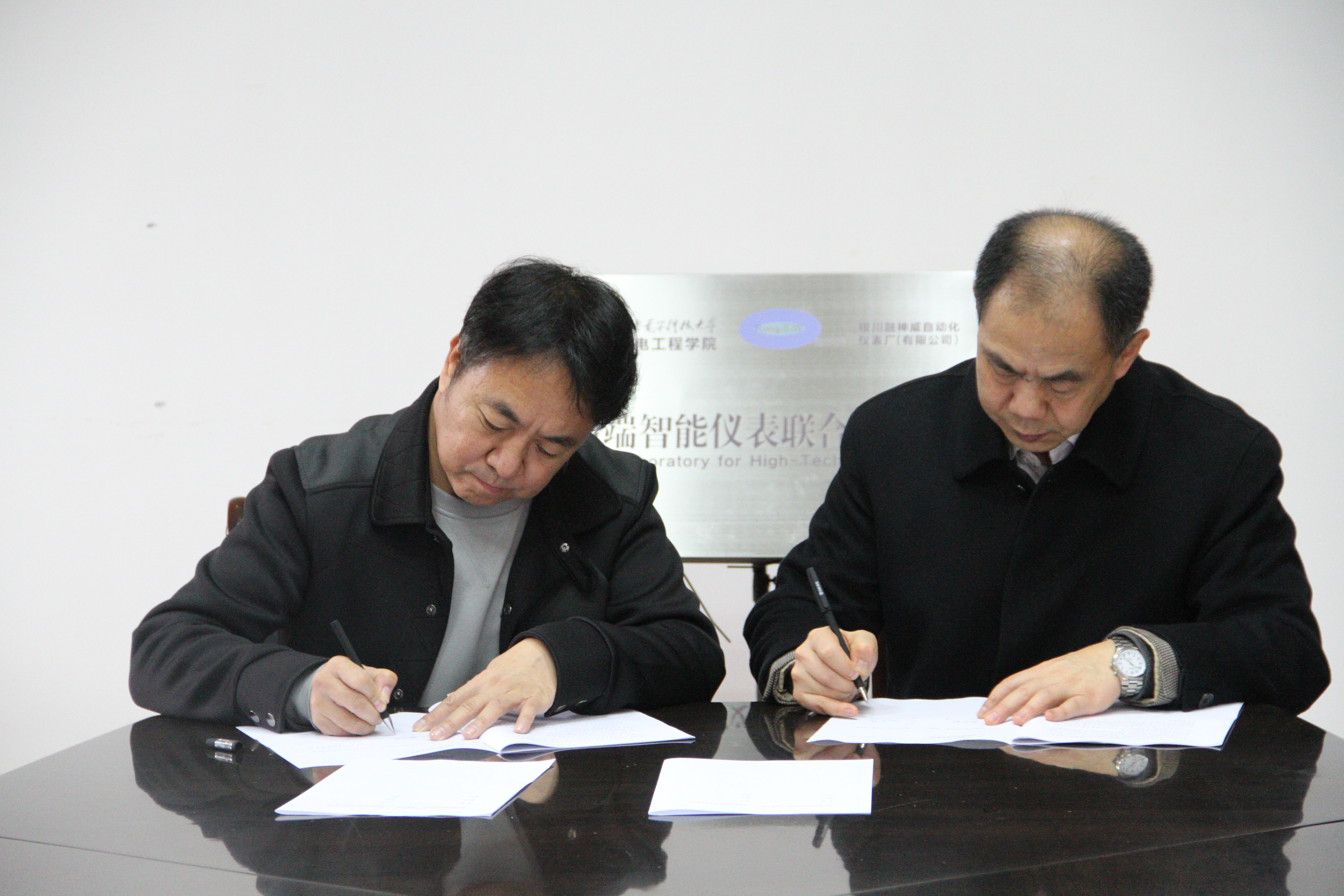 最后,仇原鹰院长和唐力南董事长共同签署了“高端智能仪表联合实验室”产学研合作框架协议并为联合实验室揭牌。