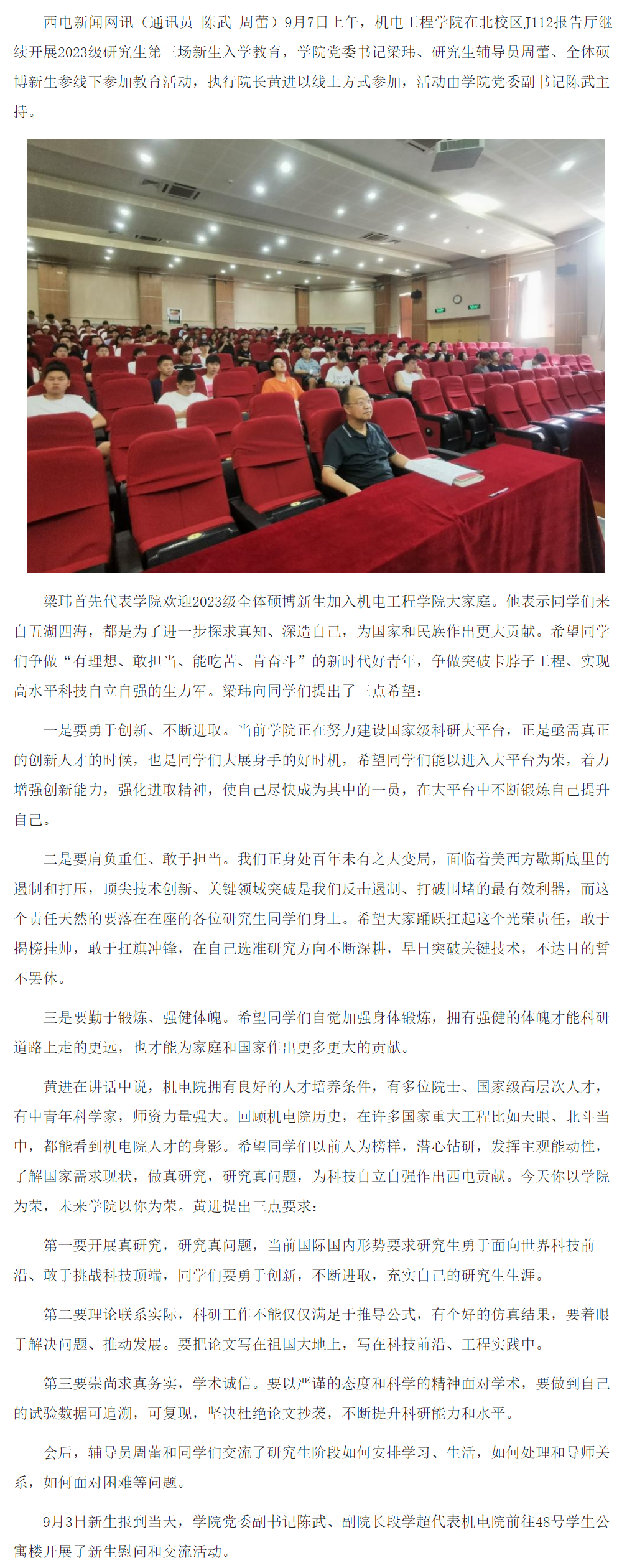 机电院开展2023级研究生新生入学教育