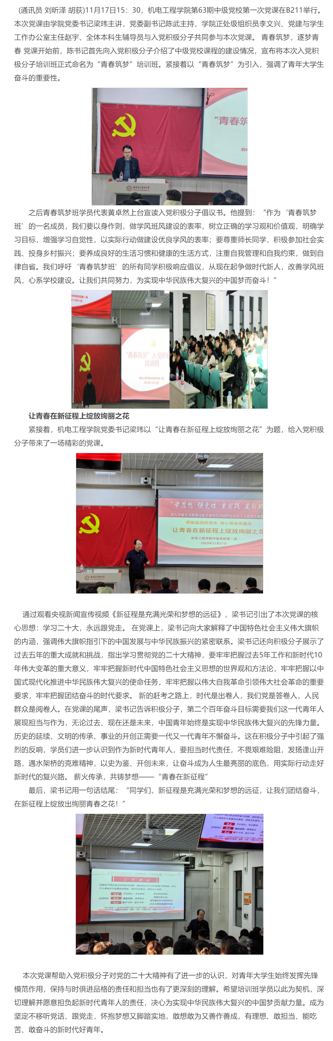 青春筑梦,砥砺前行 | 必赢242net官网第63期中级党校第一次党课圆满结束