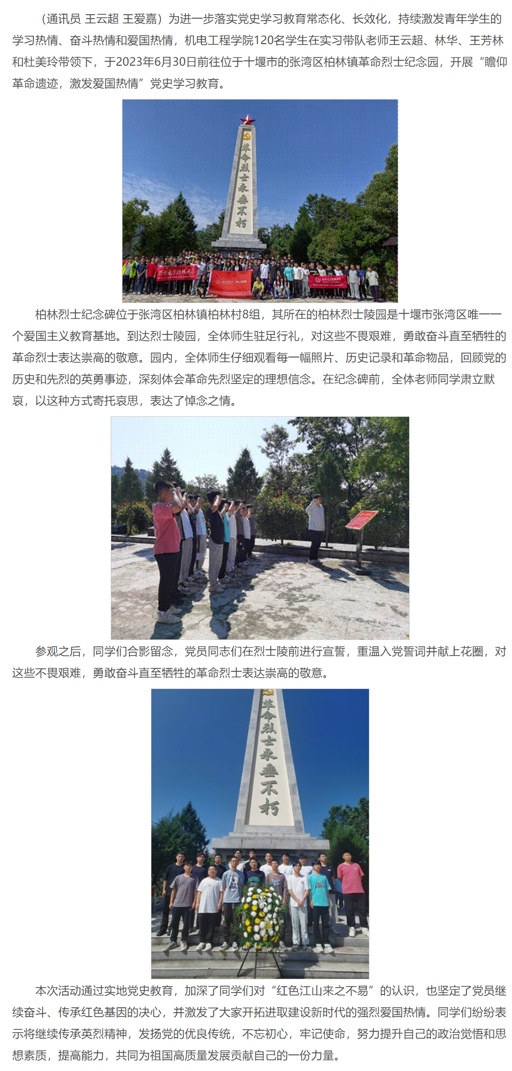 必赢242net官网赴十堰生产实习师生开展“实习不忘革命先烈,陵园重温入党誓词”党史学习教育