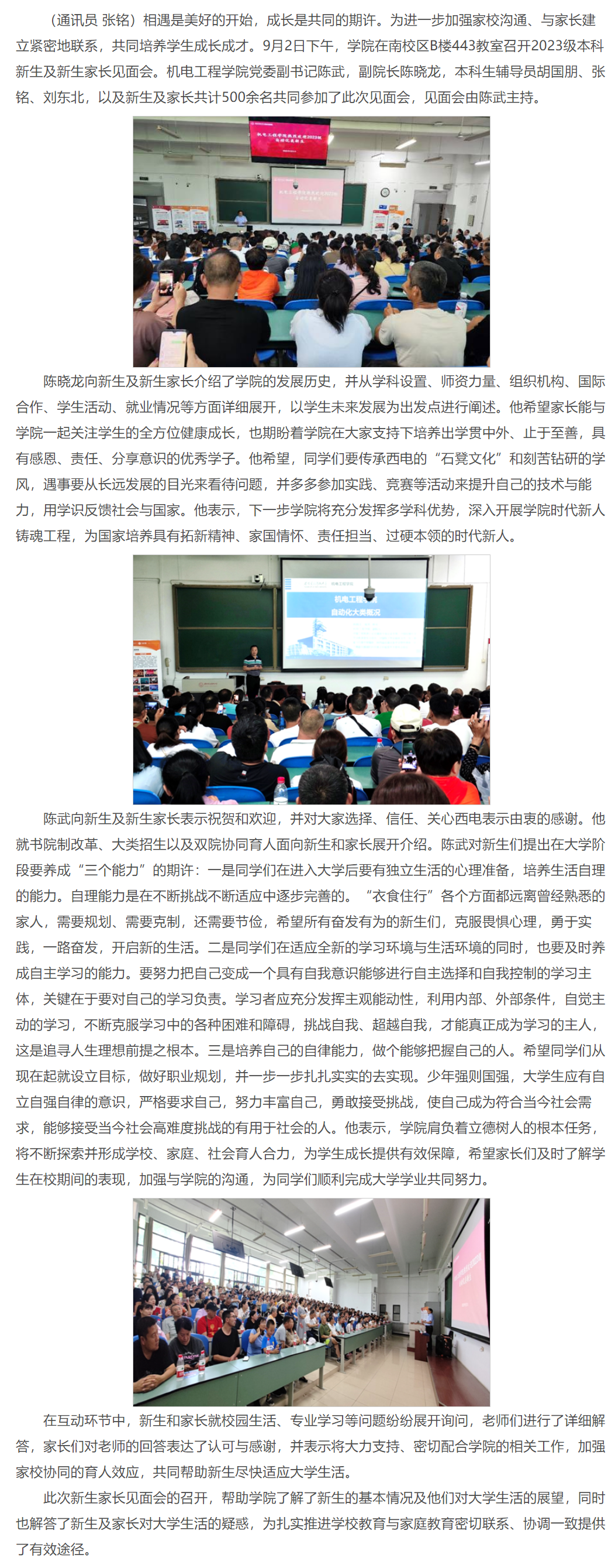 必赢242net官网顺利召开2023级本科新生及新生家长见面会