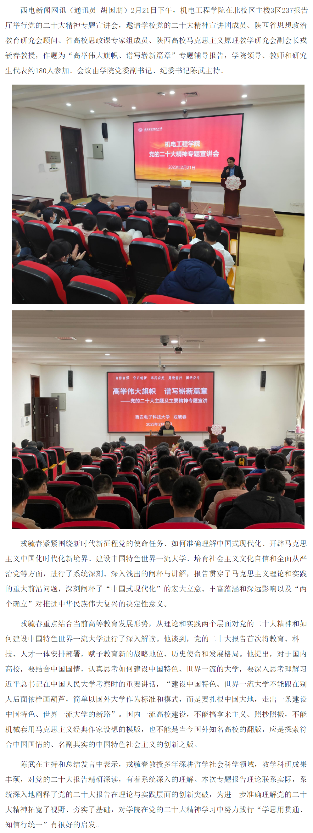 学习二十大 西电在行动丨机电院举办党的二十大精神专题宣讲会