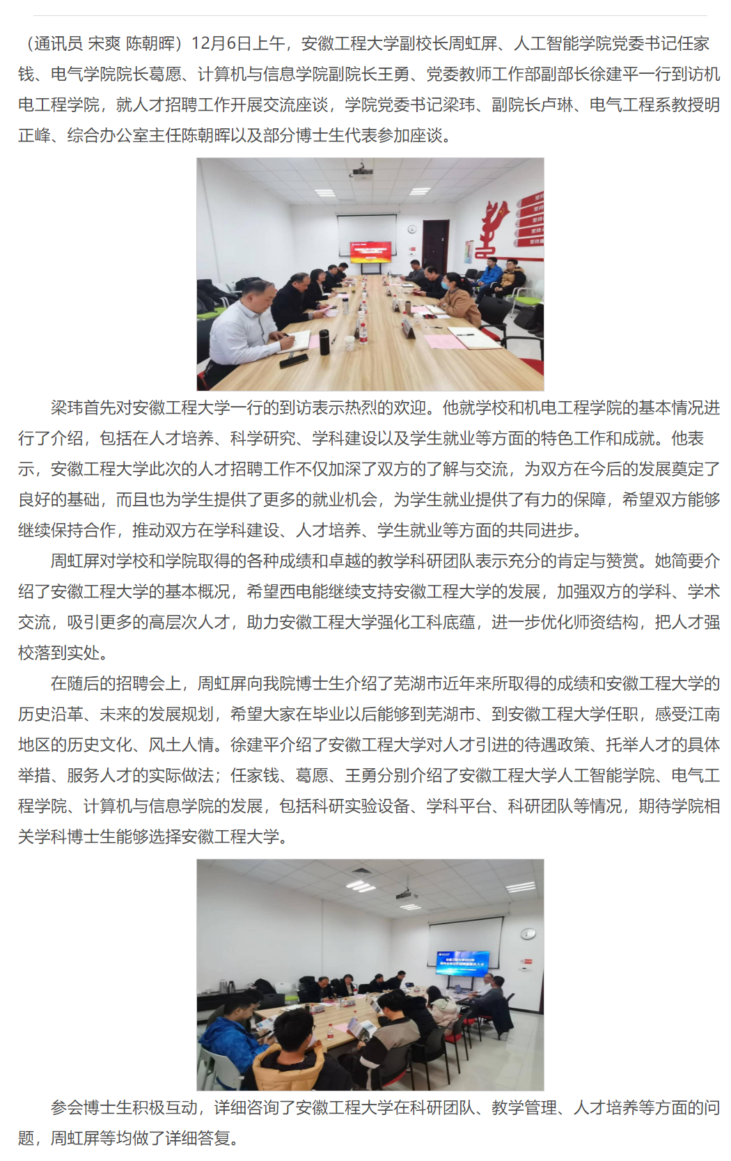 安徽工程大学一行到访必赢242net官网进行交流座谈和人才招聘宣讲
