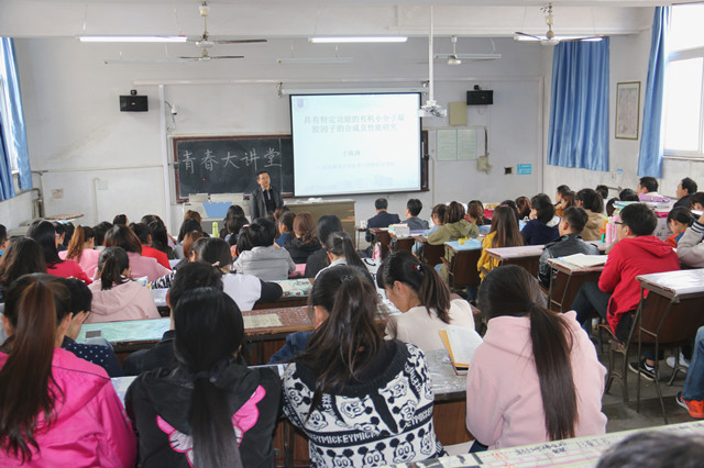 2016年10月20日,河北师范大学教授、博士生导师于海涛应pp电子pp电子官方网站邀请,来校做了题为《具有特定功能的有机小分子凝胶因子的合成及性能研究》的学术报告。化学相关专业教师及在校本科生听取了报告。 报告会上,于海涛教授从有机小分子凝胶与光反应、有机小分子凝胶的荧光调控、有机小分子凝胶的潜在应用研究三个方面对其学术团队的研究成果进行介绍,并且与师生进行了交流讨论。