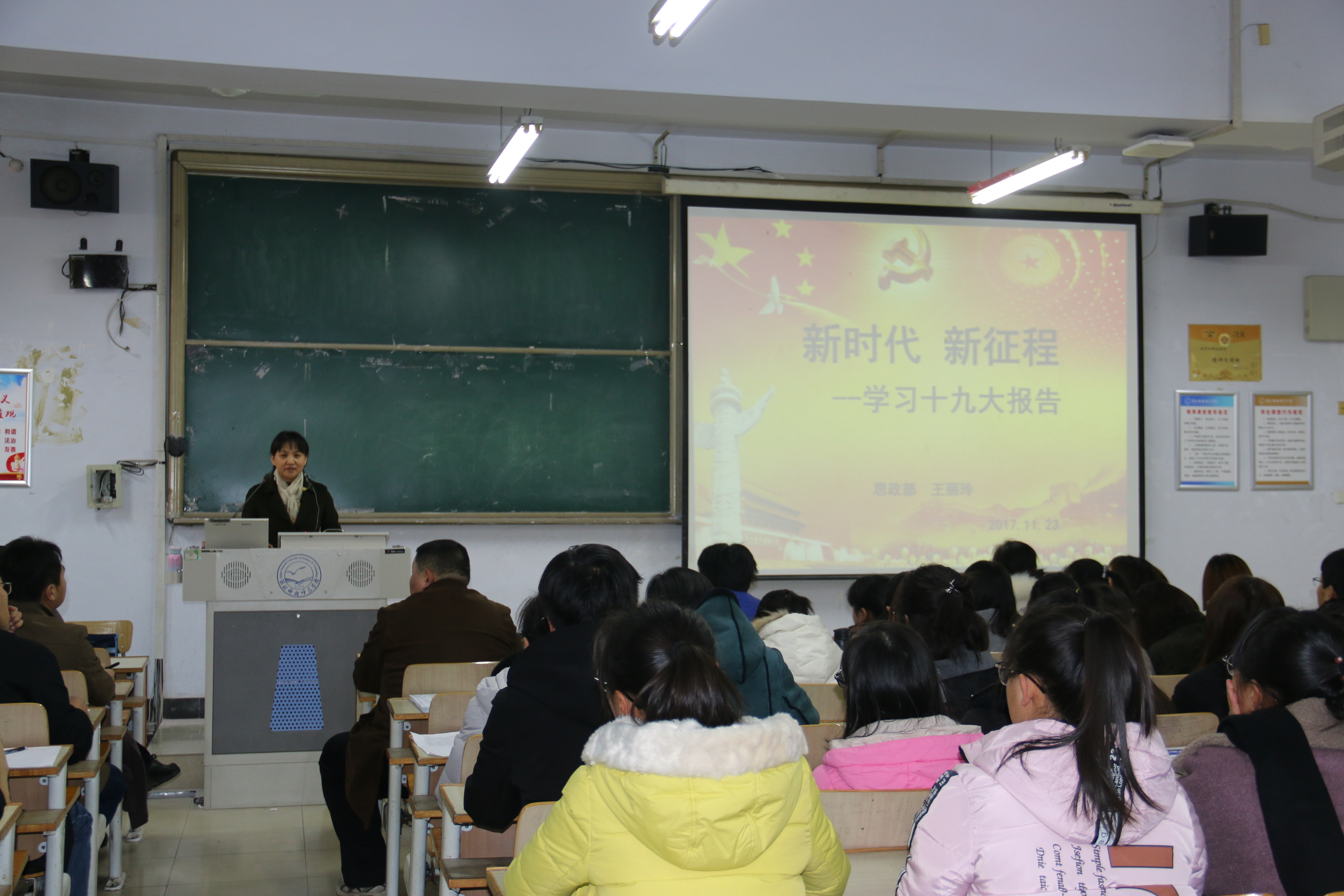 2017年11月23日下午,pp电子在1-C-109举办了“不忘初心,牢记使命”十九大精神宣讲活动。本次宣讲由校党委宣传部宣讲团专家、思想政治教育教学部王丽玲老师主讲,pp电子官方网站全体教师及150多名同学参加。