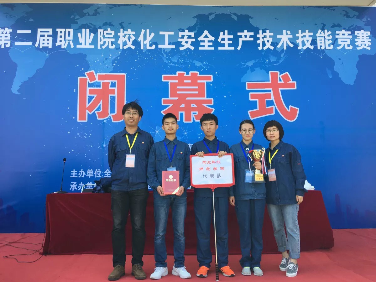 5月24日,由全国安全职业教育教学指导委员会、中国化学品安全协会主办,全国安全职业教育教学指导委员会化工安全专业分委员会承办,华北科技学院、秦皇岛博赫科技开发有限公司协办的2018年全国职业院校化工安全生产技术技能竞赛在秦皇岛博赫科技园落下帷幕。大赛中,由pp电子官方网站15级应化专业王亚玲,以及16级应化、化工专业唐明璐和祁潇组成的pp电子官方网站代表队经过奋力拼搏,从45支代表队中脱颖而出,取得了团体三等奖的好成绩。指导教师牛奎和刘璐老师荣获“优秀指导教师”的荣誉称号。