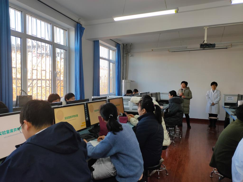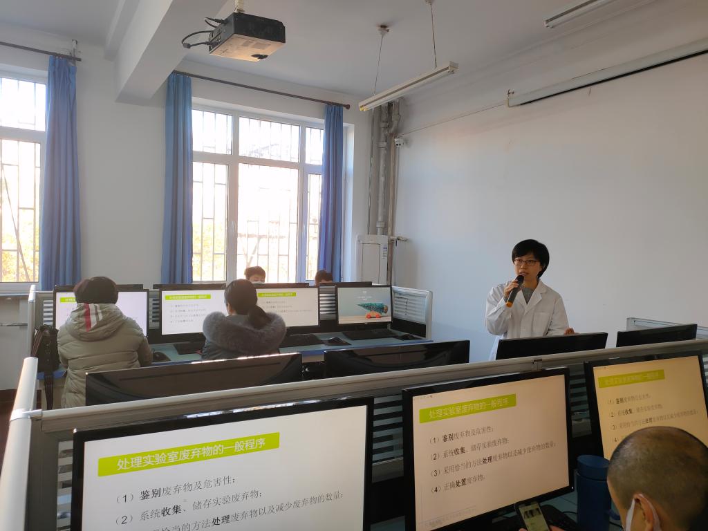 2020年11月26日上午,pp电子官方网站在化学实验教学示范中心举办实验安全系列培训——实验室废弃物处置。全院教职员共45人参加培训。