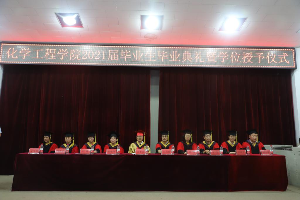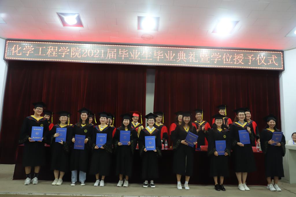 伴随着庄严的国歌,毕业典礼拉开了序幕。毕业生代表、在校生代表和教师代表依次上台发言。毕业生代表发言中表达了对于母校的不舍和感恩之情;在校生发言中充满了师哥师姐的不舍和满满的祝福之情;教师代表的精彩发言获得了学生阵阵掌声,希望学生常怀感恩之心,常回母校看看。随后学院副院长宣读了2021届校级优秀毕业论文、省级和校级优秀毕业生名单。学院院长在讲话中,对全体毕业生顺利完成学业、即将踏上崭新征途表示衷心的祝贺,同时殷殷嘱托毕业生秉承“敏学、修身、乐业、创新”校训,成为学校精神的发扬者、传承者和实践者。在舒缓音乐中典礼氛围推向高潮,身穿学位服的优秀化工学子,接受授予学位拨穗礼,完成了从在校生到校友的华丽蜕变。最后,毕业典礼在师生合唱pp电子官方网站校歌中圆满结束。