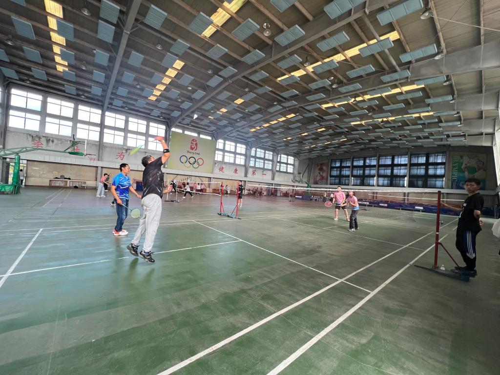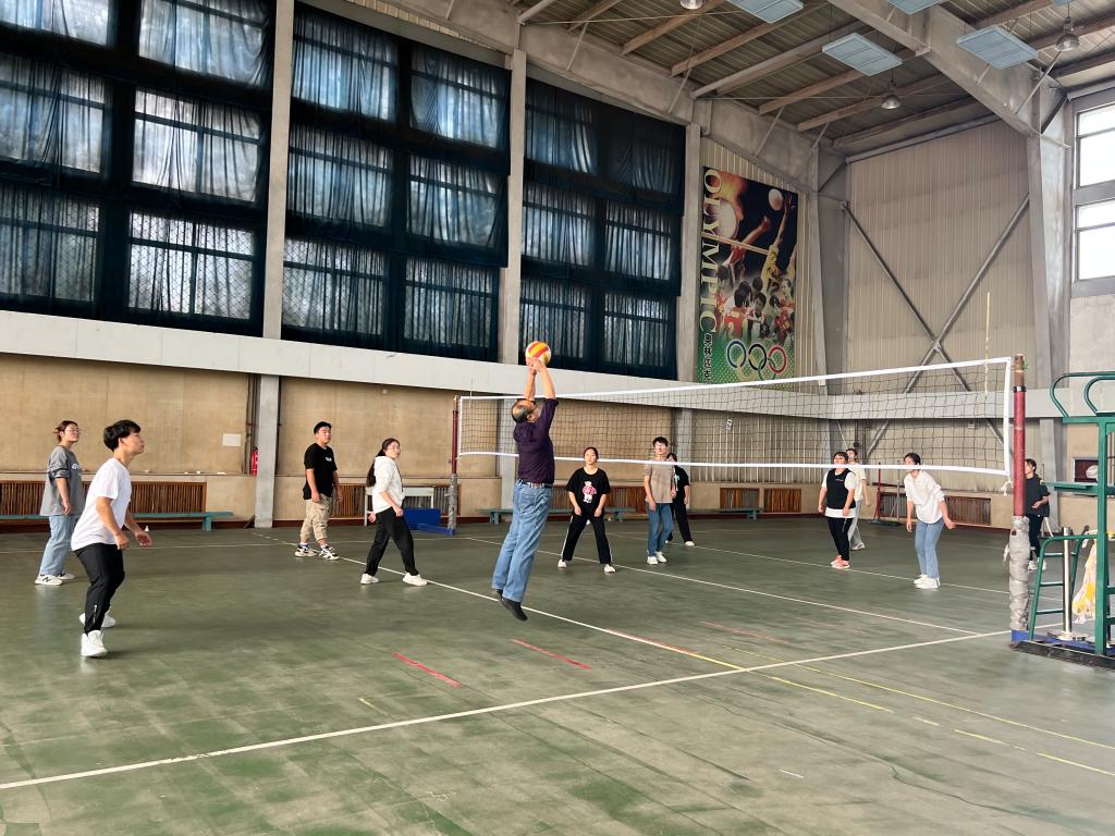 体育友谊赛活动分为羽毛球、排球、足球和趣味体育运动四个项目进行。师生团结拼搏,齐心奋进,挥洒汗水,在赛场上留下了友谊,留下了对党和祖国的美好祝愿。