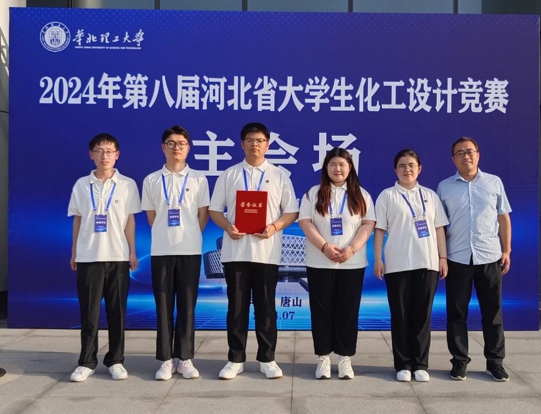 2024年7月26日至29日,河北省第八届大学生化工设计竞赛在华北理工大学顺利举行。经过两天的激烈角逐,由pp电子谢江维、刘璐、刘艳平等老师指导,邱国杰、郝梁浩、李佳欣、胡佳敏、樊智诚等5名同学组成的“满面醇风”队以优秀的设计作品和精彩的答辩,在河北省26所院校中脱颖而出,荣获河北省总决赛一等奖。