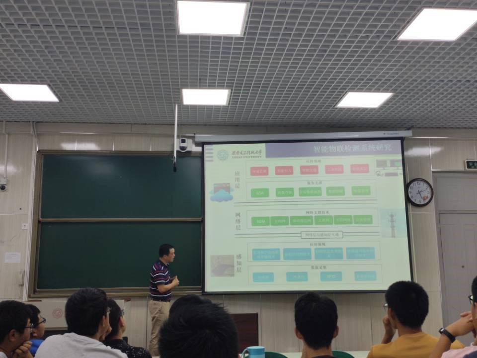 在介绍完专业总体情况后,陈晓龙教授针对智能物联感知与微波测试课题做了详细的介绍,阐述了当前此研究方向的重要性和在实际工程中的广泛应用,如沥青路面施工智慧监管系统、智慧物流冷链监测管控系统、智慧集输管道监控系统等。随着智能物联感知与微波测试的工程应用,办公效率得以大幅提高,工程安全性更进一步得到保障。随后,陈教授为同学们讲解了团队参与研发的海上综合监测控制系统。