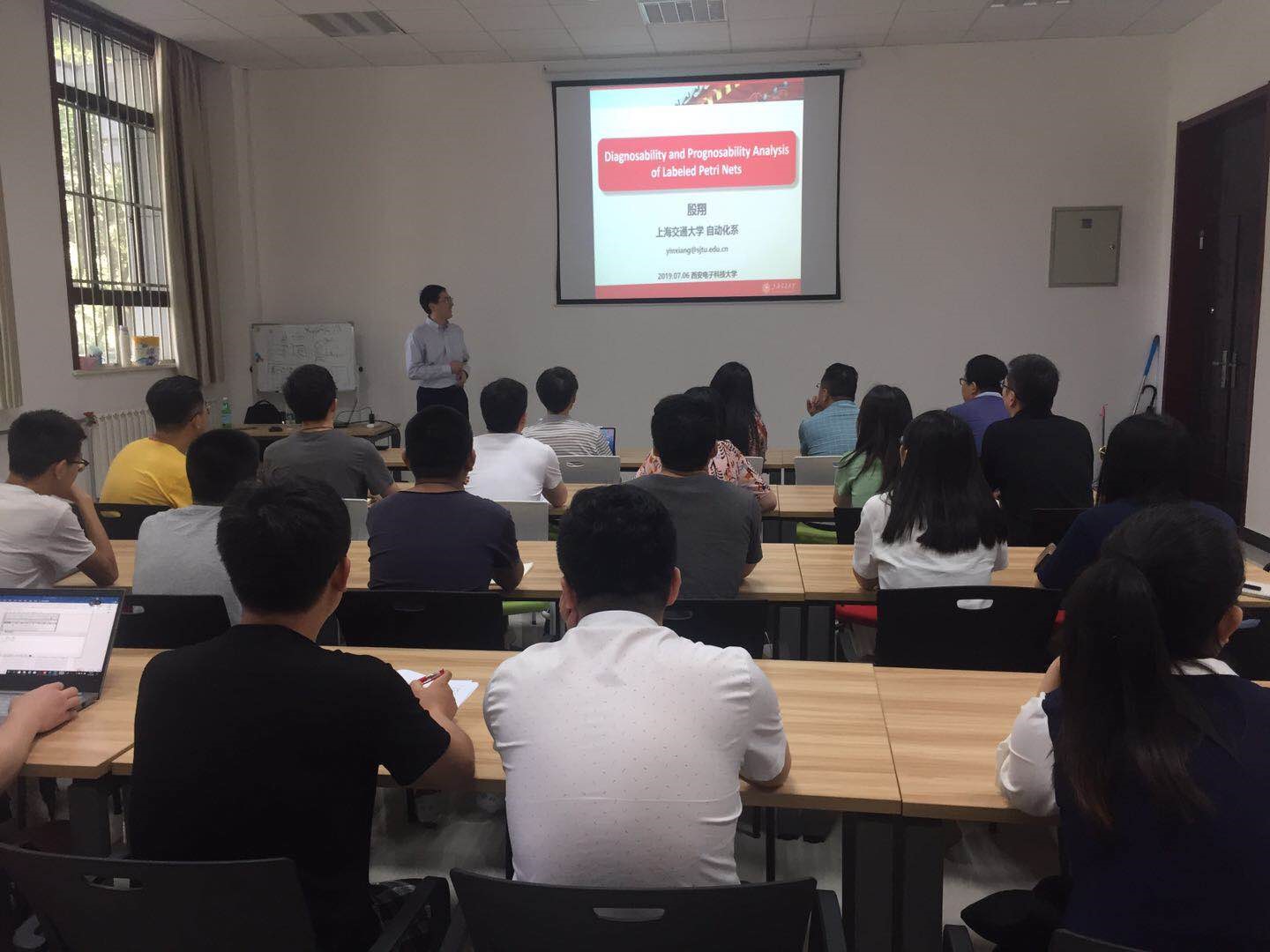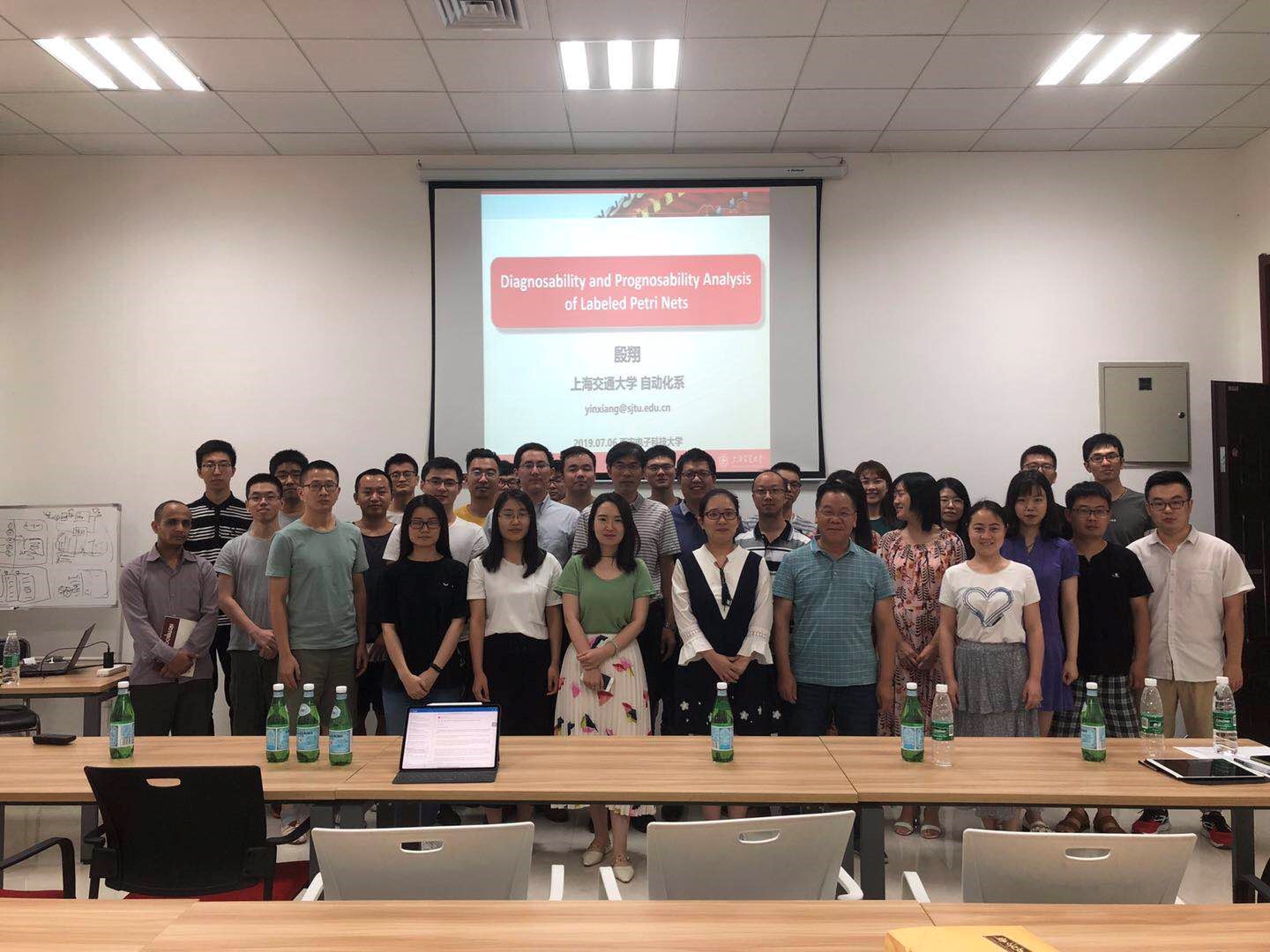 殷翔教授从离散事件系统的应用背景和Petri网讲起,介绍了Petri网的建模以及分析优势、Petri网的决策问题等。重点介绍了基于Petri网的故障诊断和预测方法,深入浅出的介绍了相关领域最新的研究进展。报告由必赢242net官网李志武教授主持。殷翔教授严谨治学态度给大家留下了深刻的印象,其报告内容引起了在场师生的踊跃提问,殷教授对于学生的提问都进行了细致耐心回答,对在场师生今后的科研工作有很深的启发。
