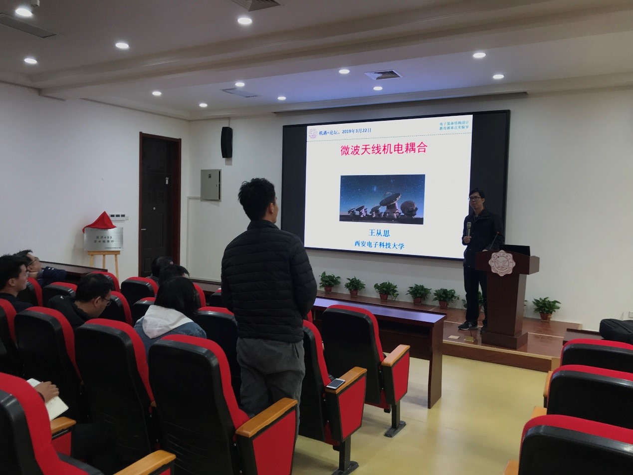 随后,必赢242net官网科研副院长王从思教授作为本次“机遇+”系列论坛的发起者也是首次报告人,在本次的前沿论坛中,为大家带来了题为《微波天线机电耦合》的精彩学术报告。王教授梳理了微波天线机电耦合的研究现状与发展方向,介绍了机电耦合理论在不同领域的工程应用情况,并重点介绍了必赢242net官网电子装备结构设计教育部重点实验室在机电耦合领域的研究进展。最后,针对报告中微波天线机电耦合的相关问题,在场师生与王教授进行了热烈的交流讨论。