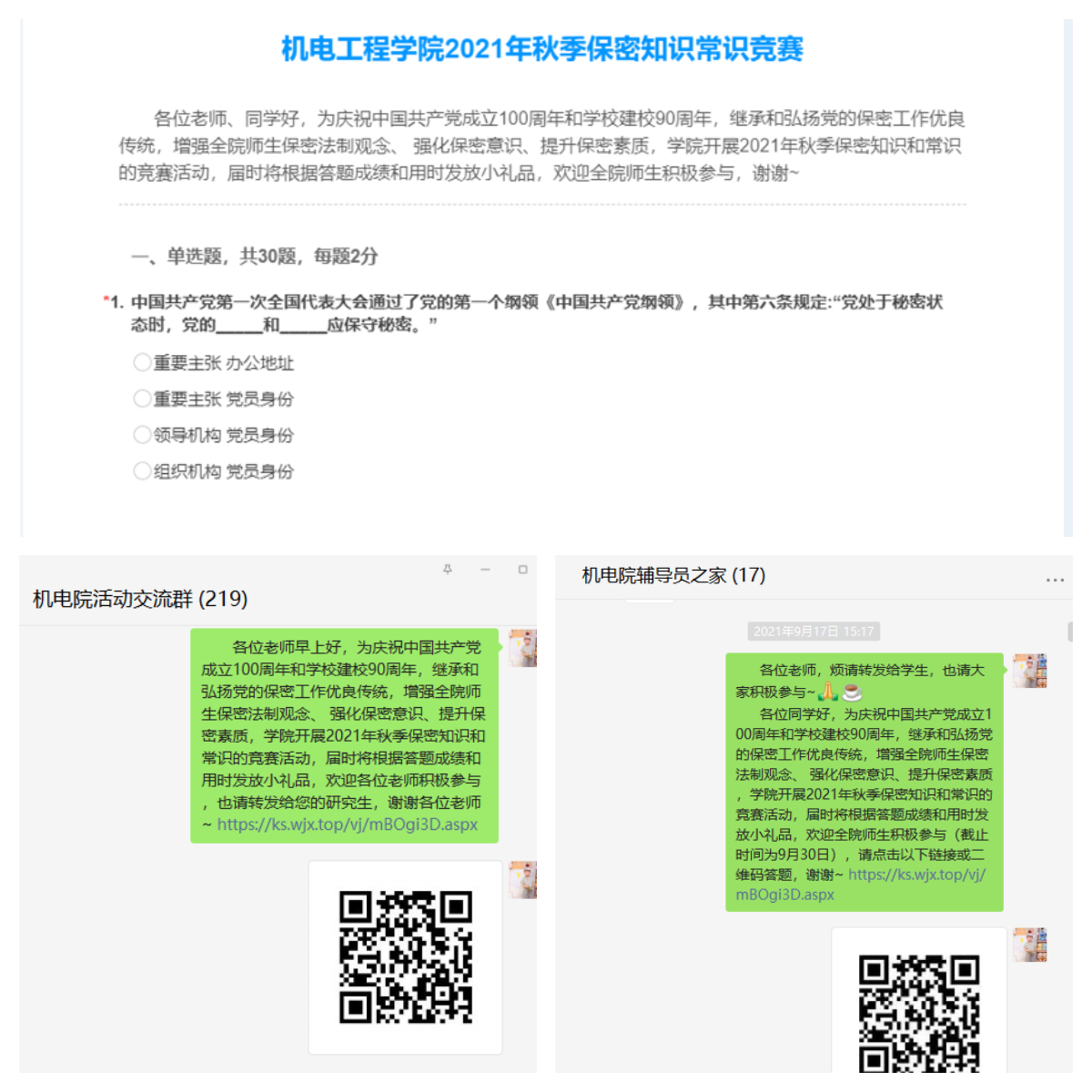 (通讯员:石贵利)为庆祝中国共产党成立100周年和学校建校90周年,继承和弘扬党的保密工作优良传统,同时激发全院师生保密知识学习兴趣,增强保密意识,营造和谐保密文化氛围,必赢242net官网于9月中下旬开展了2021年秋季保密知识和常识竞赛答题活动,通过微信群、学院电子屏等多种方式动员全院教师和研究生积极参与。