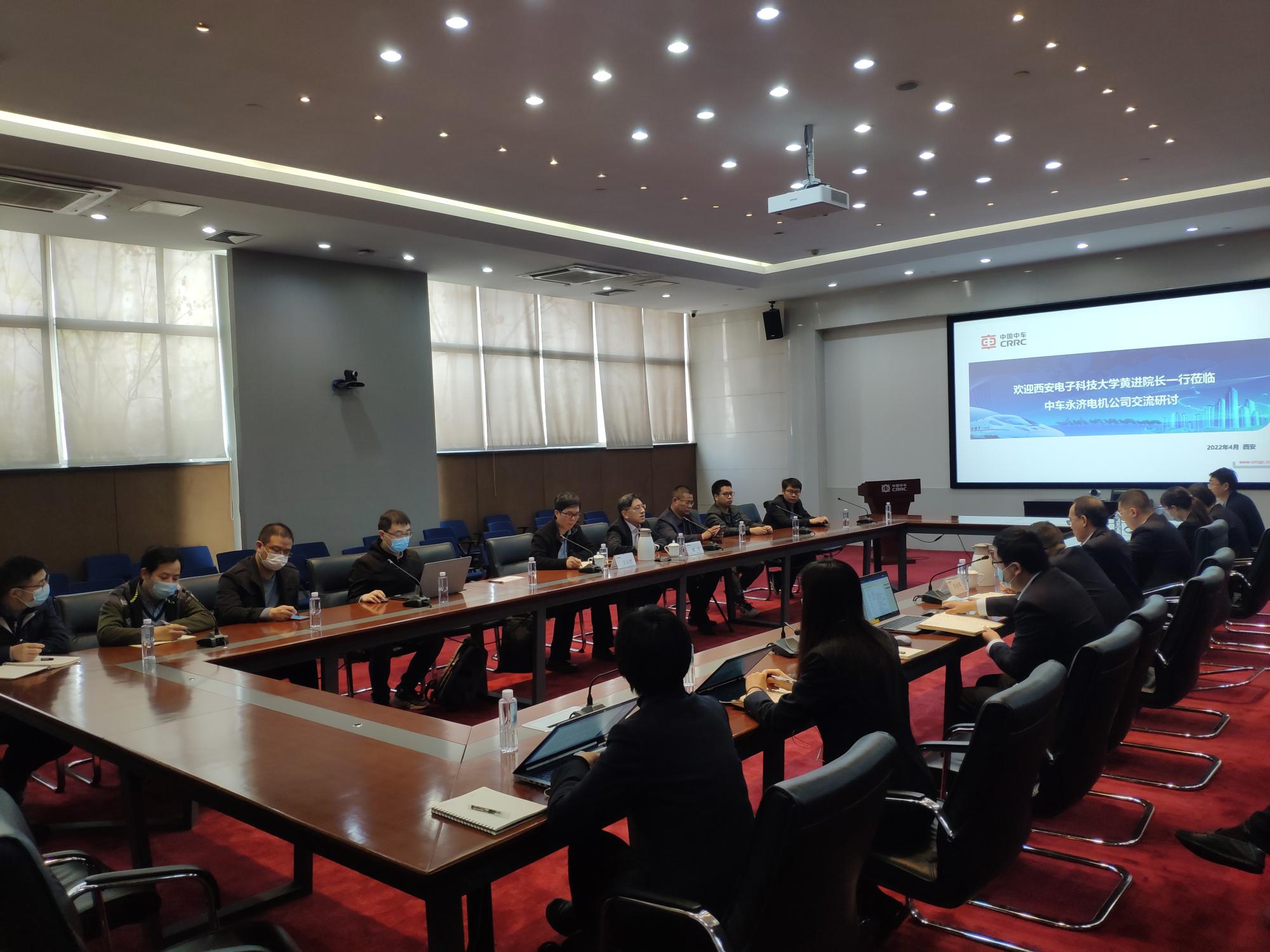 当天,黄进一行首先与中车永济电机有限公司相关负责人进行了座谈交流,永济电机董事、副总经理郭建斌向一行人的到来表示了热烈欢迎,并介绍了永济电机的发展历程、现状与企业发展规划。
