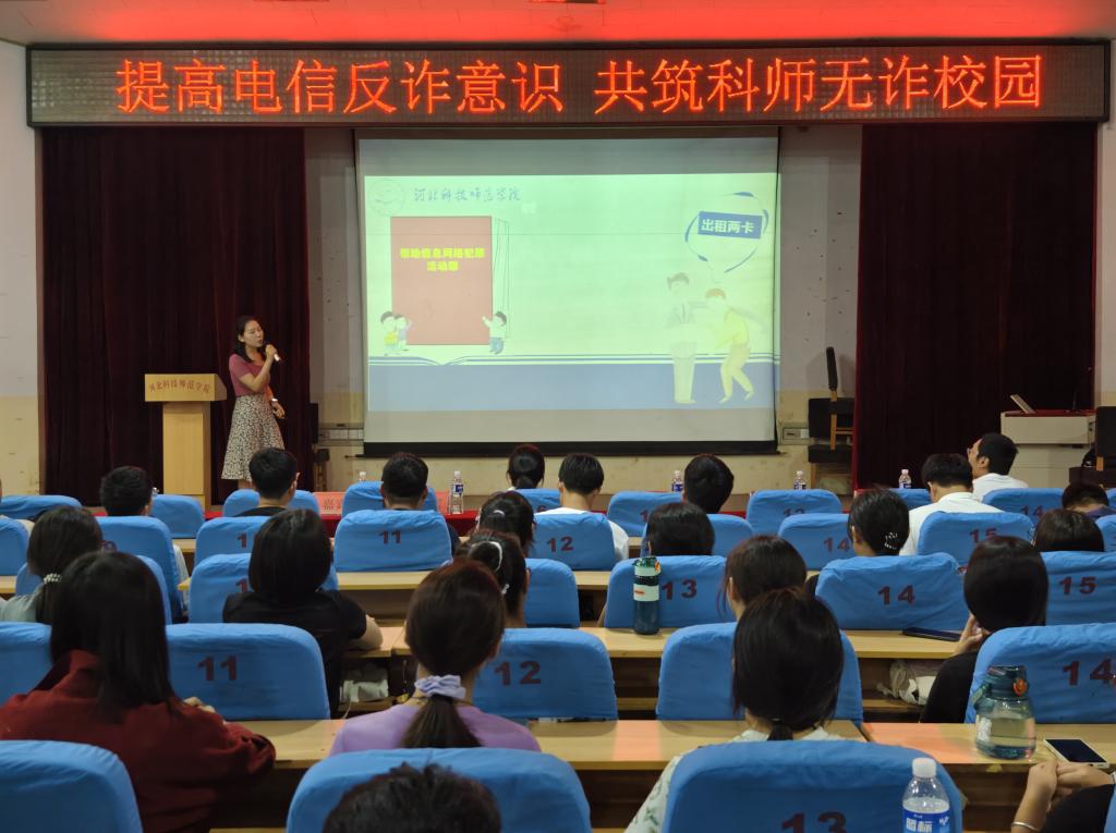 9月5日,pp电子官方网站在昌黎校区学术报告厅举办了以“提高电信防诈意识,共建科师无诈校园”为主题的讲座。学院学生工作负责人,全体辅导员、新生班主任和2024级所有新生参加了活动。