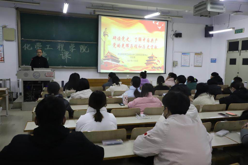2021年11月8日晚,pp电子官方网站党委书记彭友舜同志为pp电子官方网站全体在校学生党员和发展对象80余人讲党课,学生党支部书记一并聆听了党课。党课由学院党委副书记副院长王大江同志主持。