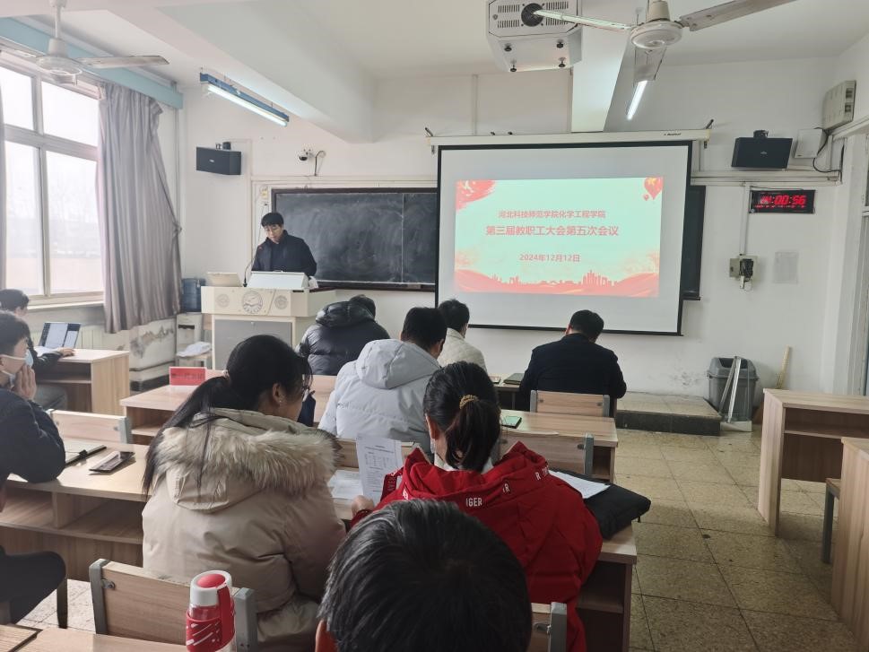 2024年12月12日下午,pp电子官方网站第三届第五次教职工暨工会会员大会(以下简称“双代会”)在昌黎校区2号楼202室召开。
