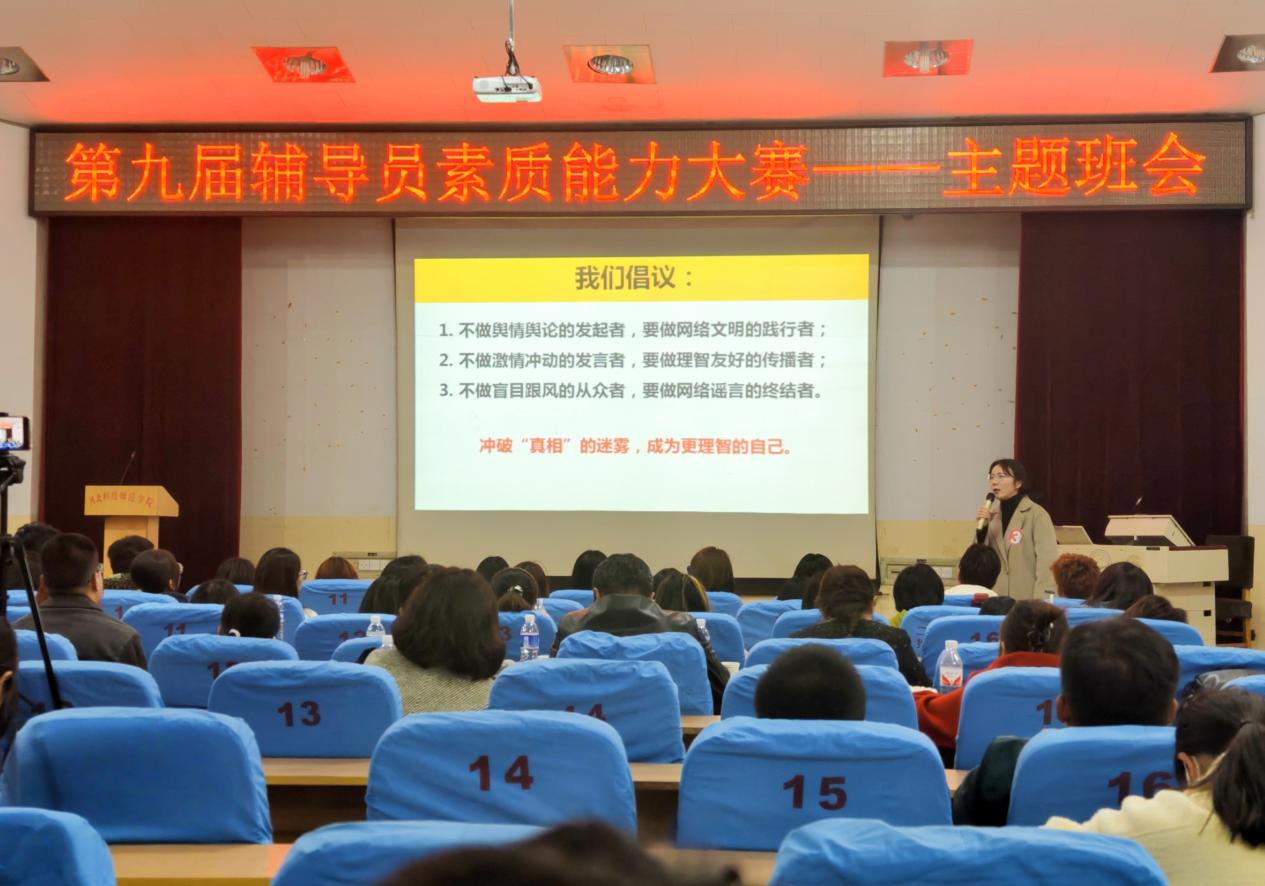 10月31日下午,pp电子第九届辅导员素质能力大赛主题班会项目在昌黎校区学术报告厅成功举办。pp电子王仕琪老师以《让子弹飞一会——冲破“真相”的迷雾,树立正确价值观》取得优异成绩。